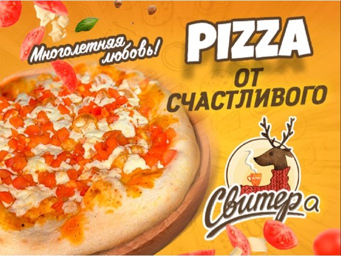 Вот уже на протяжении долгого времени Свитер радует жителей поселка своей фирменной пиццей. Особая технология приготовления теста и сбалансированная начинка создала любовь, которая из года в год не теряет своей силы!